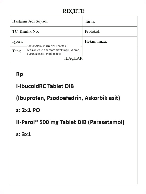 SOĞUK ALGINLIĞI ( NEZLE ) REÇETESİ – YETİŞKİNLER İÇİN SEMPTOMATİK ( AĞRI, YANMA, BURUN AKINTISI, ATEŞ ) TEDAVİ ::: ÜSYE REÇETESİ